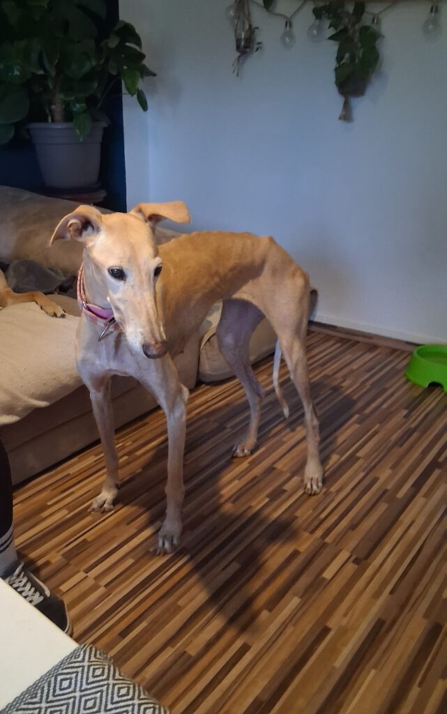 Perla ist bereits Stubenrein, läuft gut an der Leine und orientiert sich an ihrem Menschen. Sie ist noch sehr vorsichtig in ihren Bewegungen und beobachtet erstmal jede neue Situation.