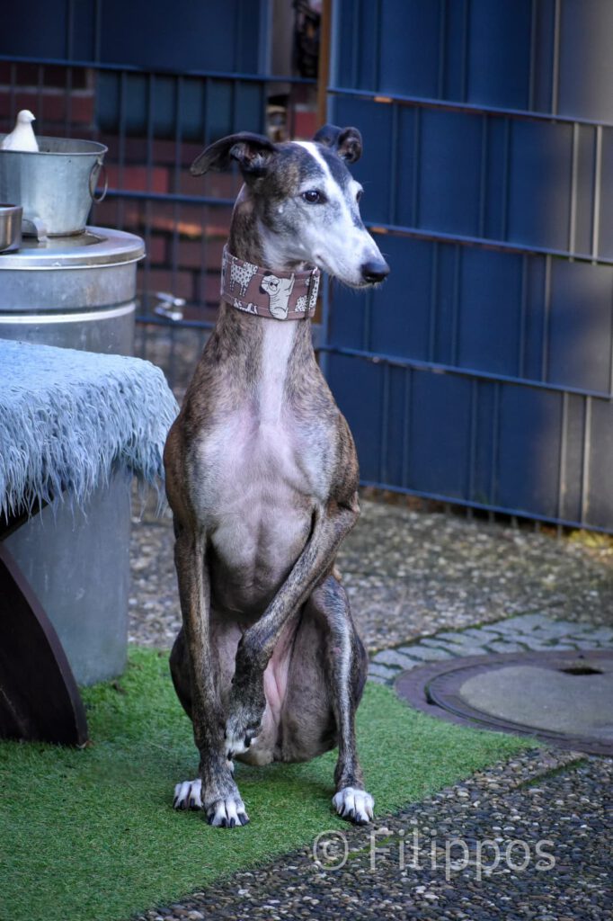 Uma ist eine sehr liebe und Menschenbezogene Galga. Sie zeigt sich in ihrer Pflegestelle als brave, verträgliche und ruhige Hündin und nicht ängstlich. An der Leine läuft Uma vorbildlich (solange kein Kaninchen direkt vor ihr über den Weg rennt … aber mal ehrlich, wer würde da schon ruhig bleiben?) sie kommt mit anderen Hunden gut zurecht und findet auch Kinder super. (Uns wurde gesagt, sie kann allerdings nicht zu Katzen und kleinen Hunden und wir werden dass im täglichen Leben nun genau checken.)
